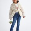 Giaccone con cappuccio in nylon Imbottitura in ovatta Trapuntatura a righe Tasche con zip sui lati Cintura elastica con fibbia tuc in metallo Logo in metallo sul retro